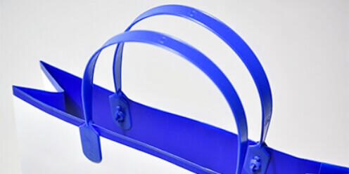 取っ手を小判型に抜いたシンプルな形のポリ袋です。シーンに限定されずさまざまな用途で使用されています。