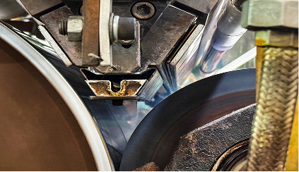 冷却ロールで圧着・固化させることで一体化させます。