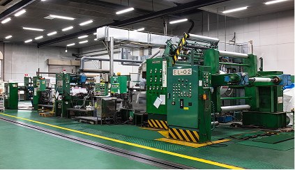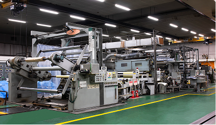 「当社工場では押し出しラミネート機を2台保有。月間500万mの加工が可能です。